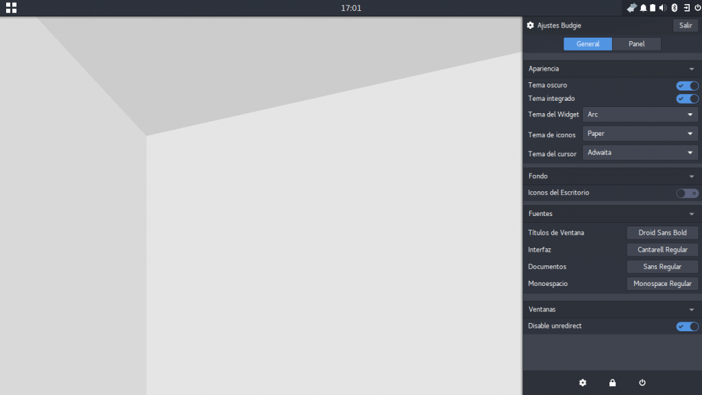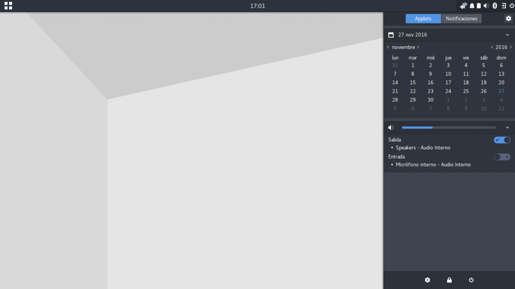 De la mano del siempre controversial Ikey Doherty, aterriza en Debian testing este escritorio compatible con Gnome y base de SolusOS, un entorno que en palabras de su autor busca ser «sencillo y elegante» y que presume de ser altamente configurable. A priori, el elemento más característico de este nuevo entorno es Raven, un panel vertical que actúa como cajón de sastre desde donde gestionar notificaciones (calendario, aplicaciones multimedia, etc), añadir widgets y configurar el escritorio. Una especie de gnome-tweak-tool integrado en un panel y a golpe de click. Aquí tenéis unas capturas para que veáis como luce en Debian: